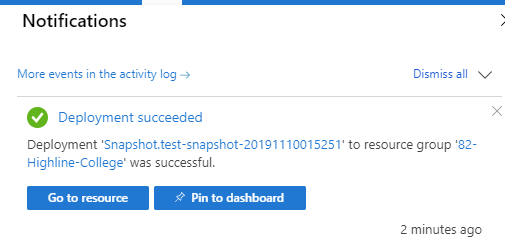 6. You will be notified that the deployment of this new disk is in progress, and it will take a few minutes for this to finish. Once it is finished, you will receive another notification stating that the deployment has succeeded and can be viewed.